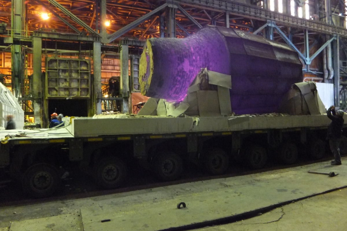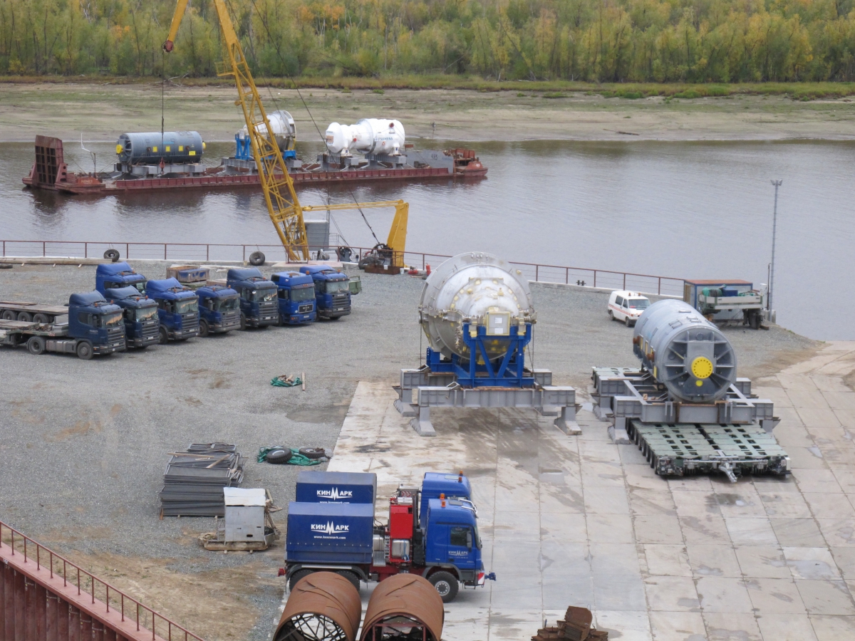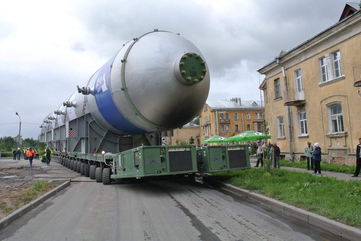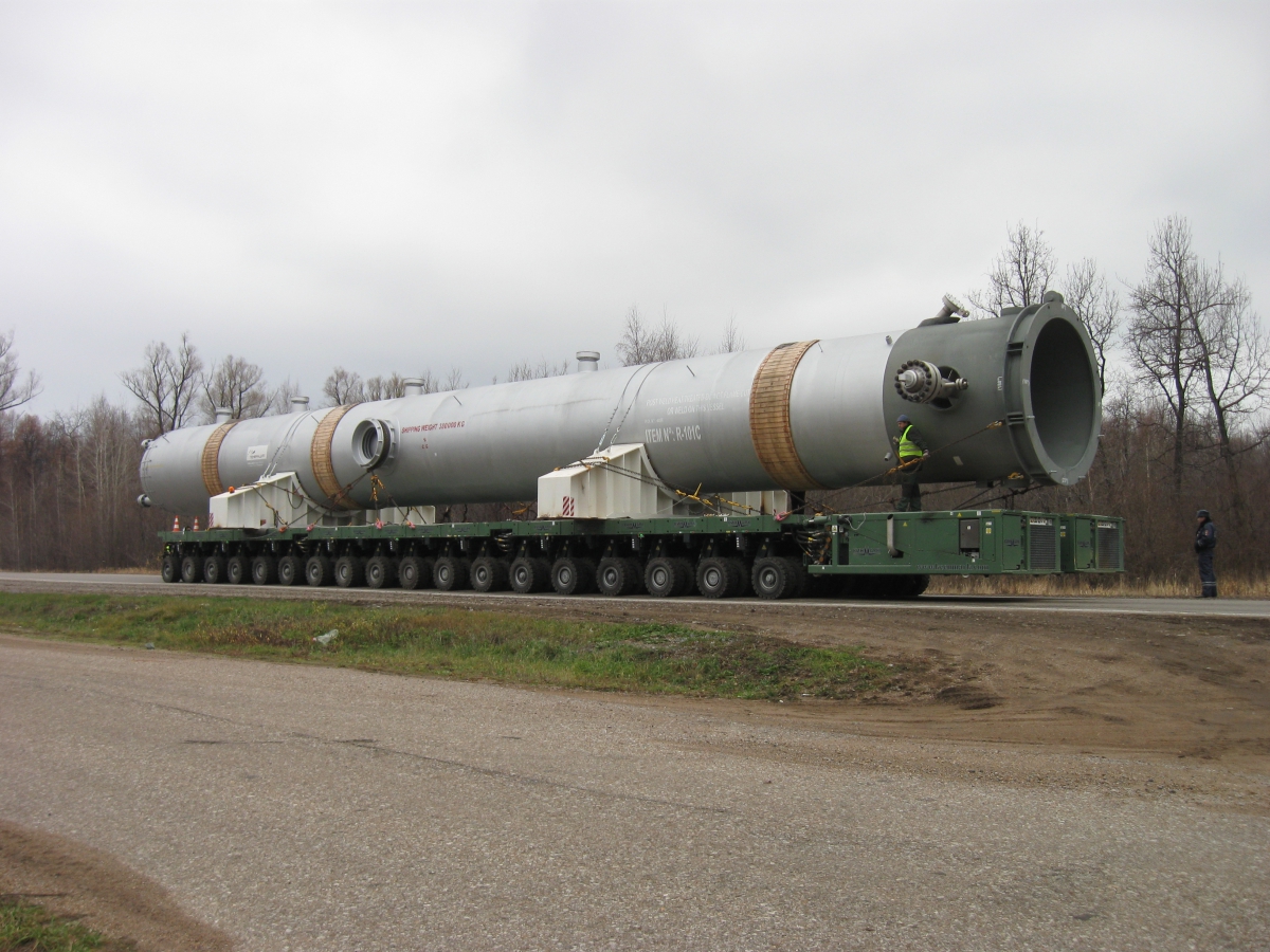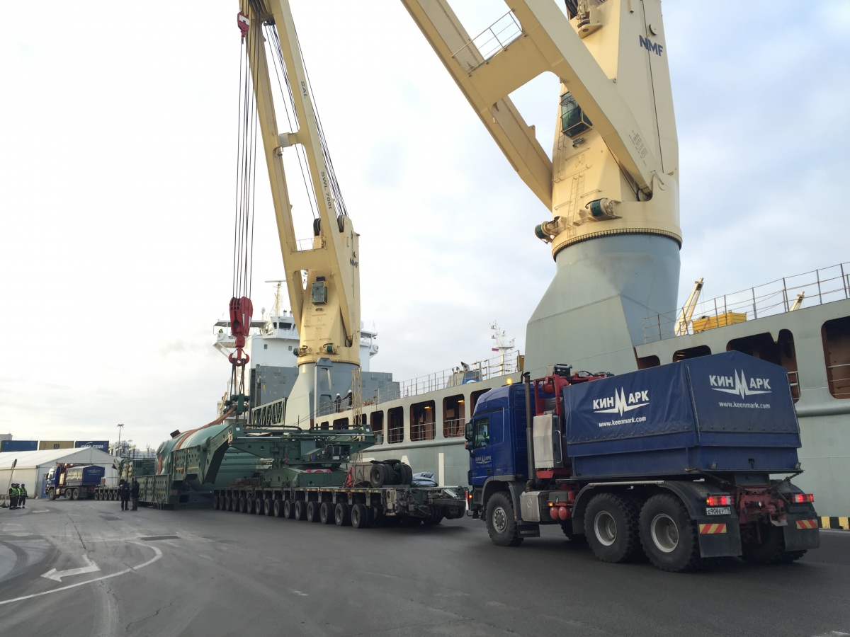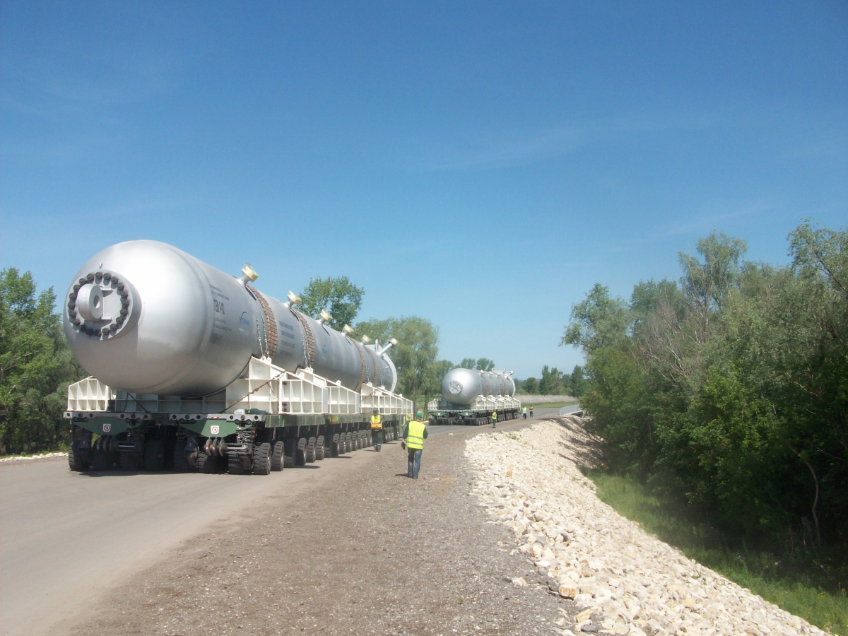 Multimodal transportation of equipment with more than 100 units, total weight 2500 tons, moving via route S.Petersburg – Salavat. Sea, river and road transport was engaged during the transportation. Temporary customs control zone was opened. Maximum dimensions: diameter – 8,8 m, height – 4,7m, total weight – 275 tons. The realization of this project required bridge structure strengthening, lifting of the high voltage transmission lines, development of the RO-RO quay.