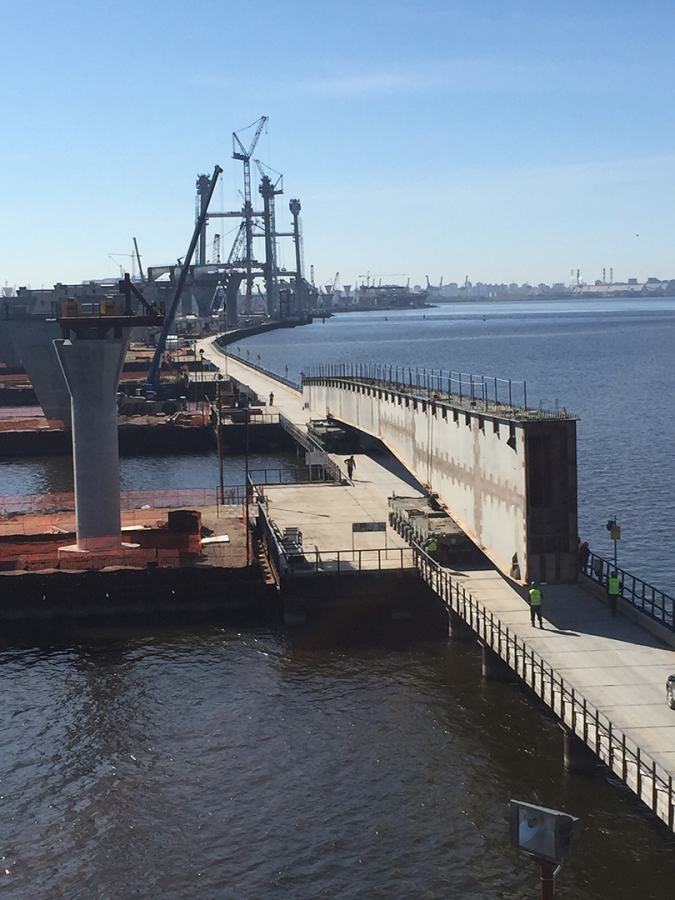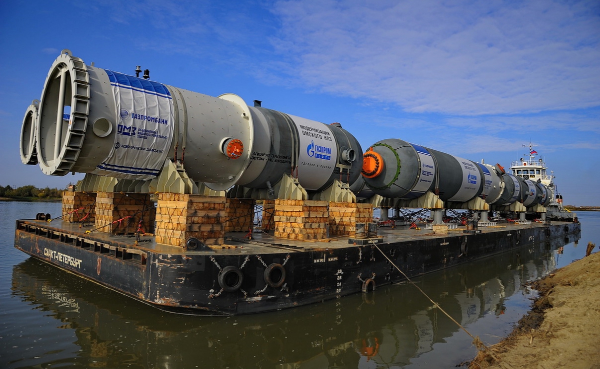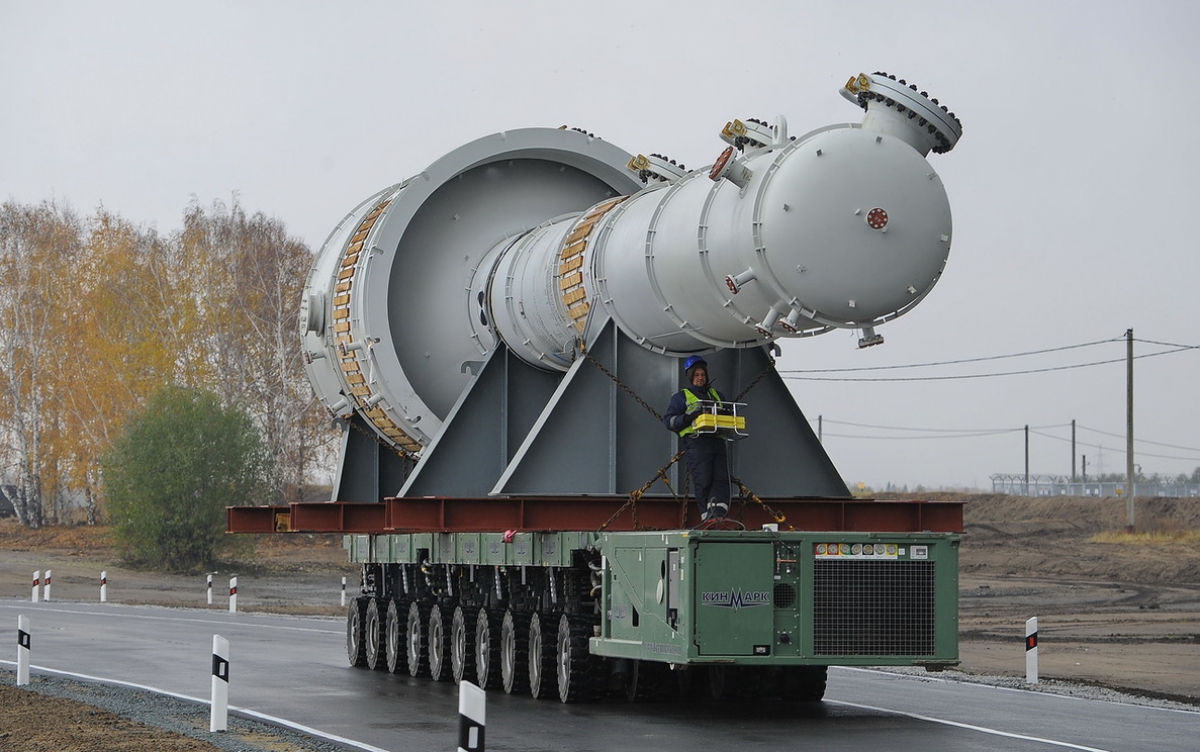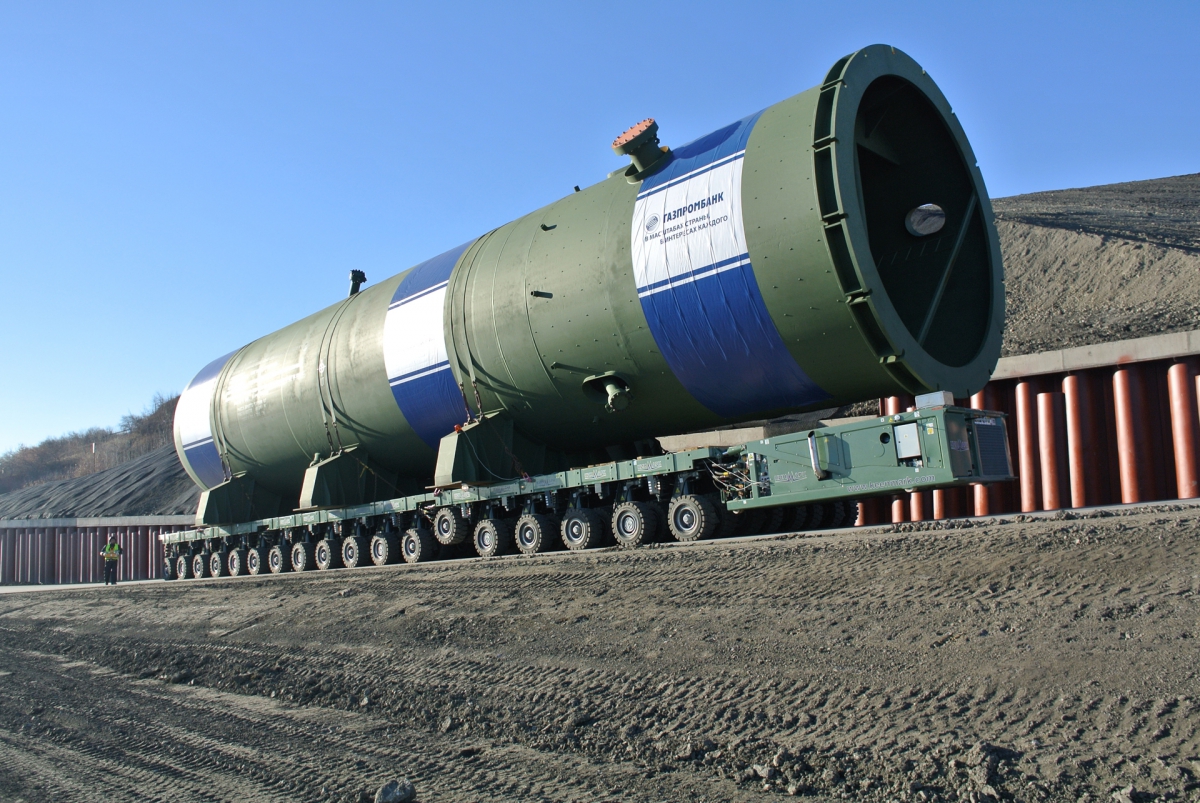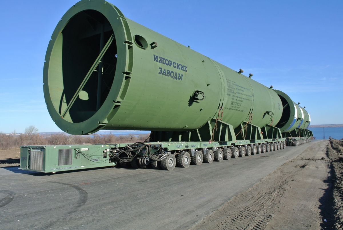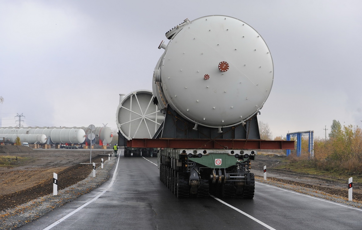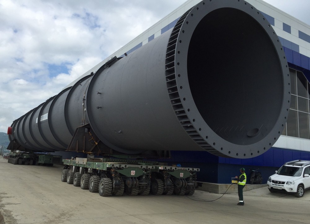 Multimodal transportation of equipment with more than 100 units, total weight 2500 tons, moving via route S.Petersburg – Salavat. Sea, river and road transport was engaged during the transportation. Temporary customs control zone was opened. Maximum dimensions: diameter – 8,8 m, height – 4,7m, total weight – 275 tons. The realization of this project required bridge structure strengthening, lifting of the high voltage transmission lines, development of the RO-RO quay.